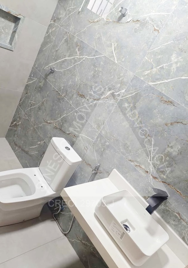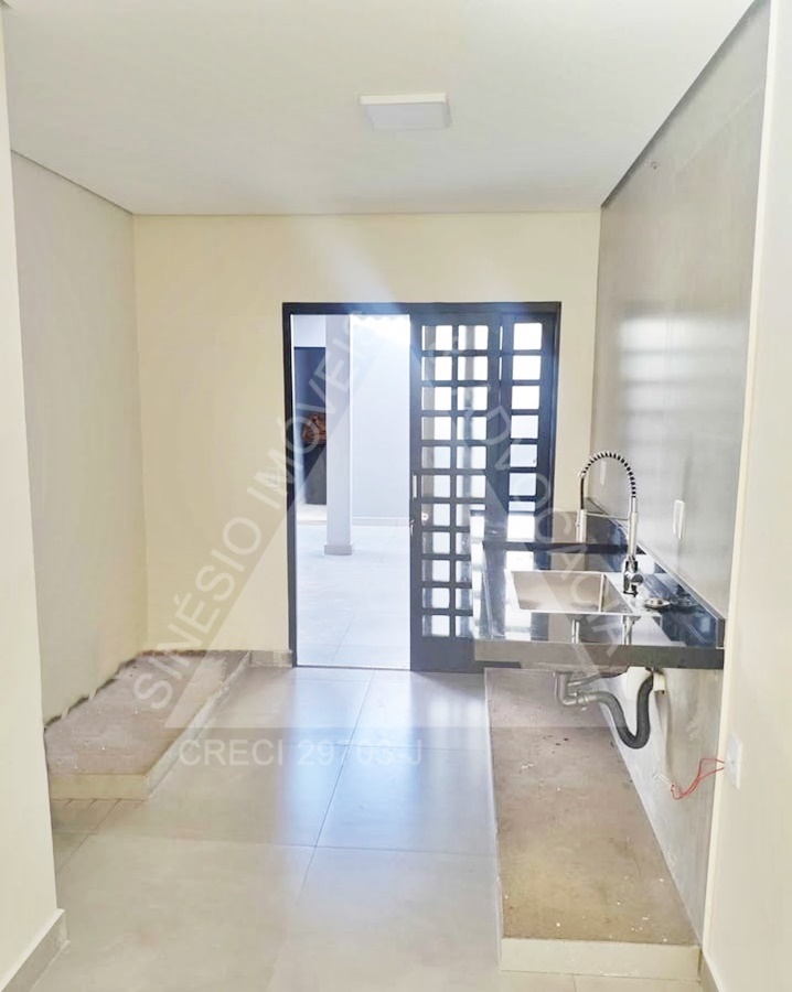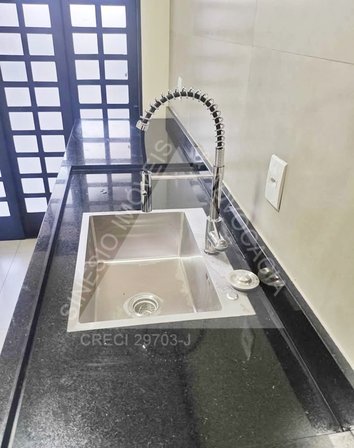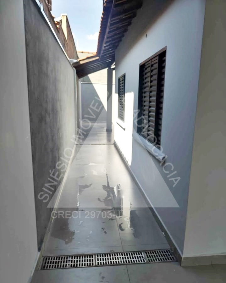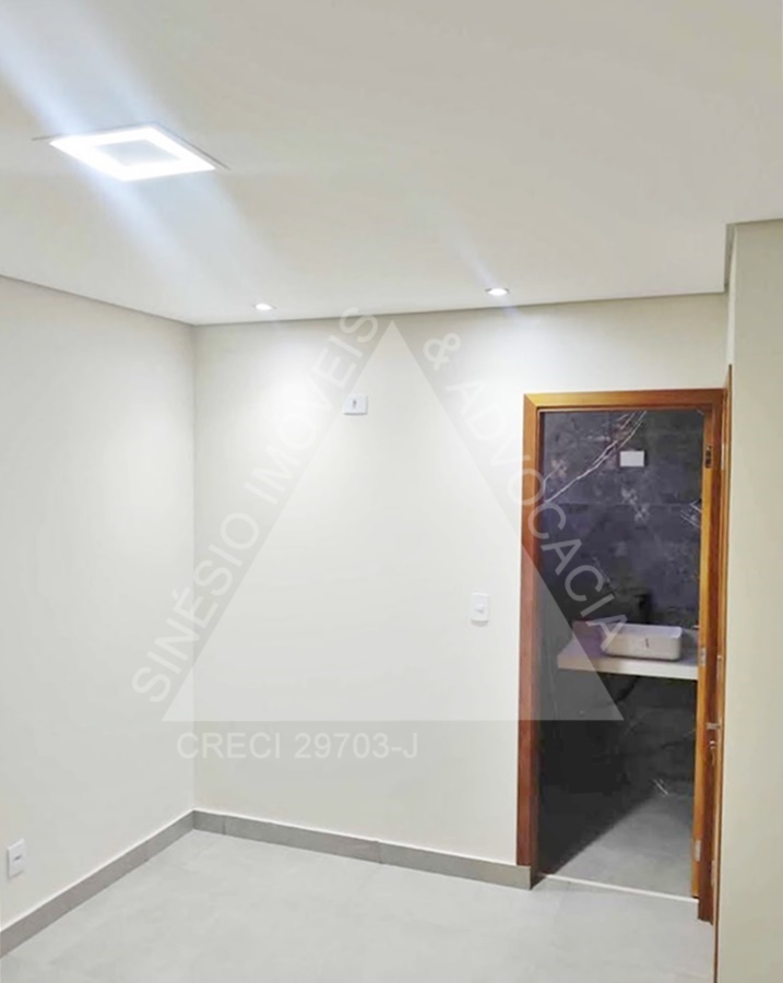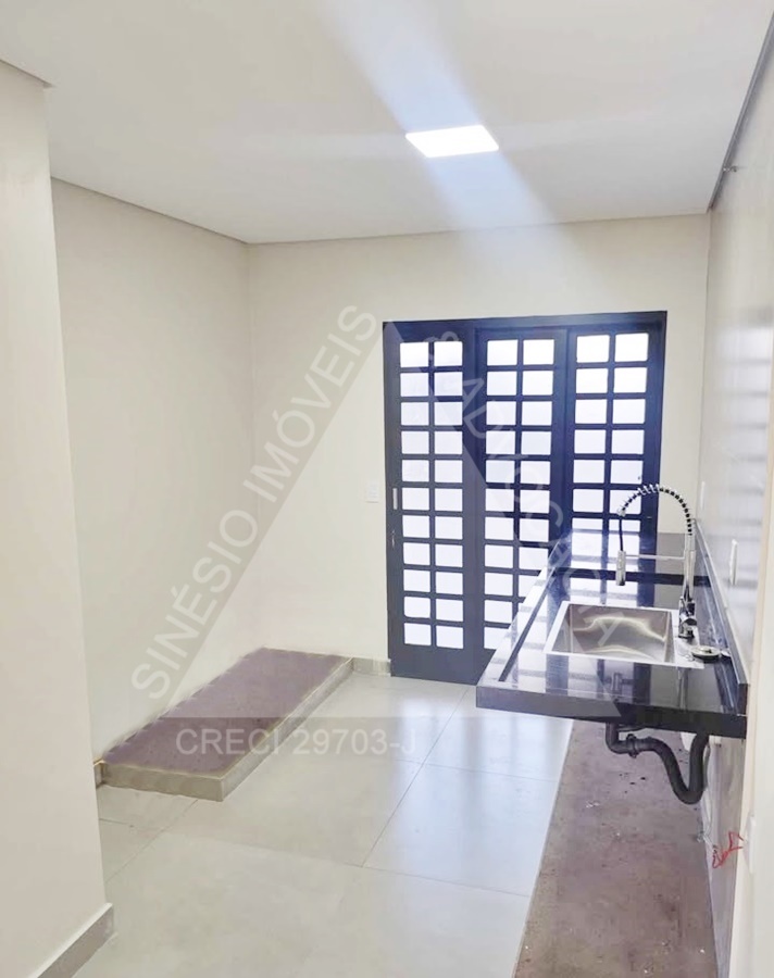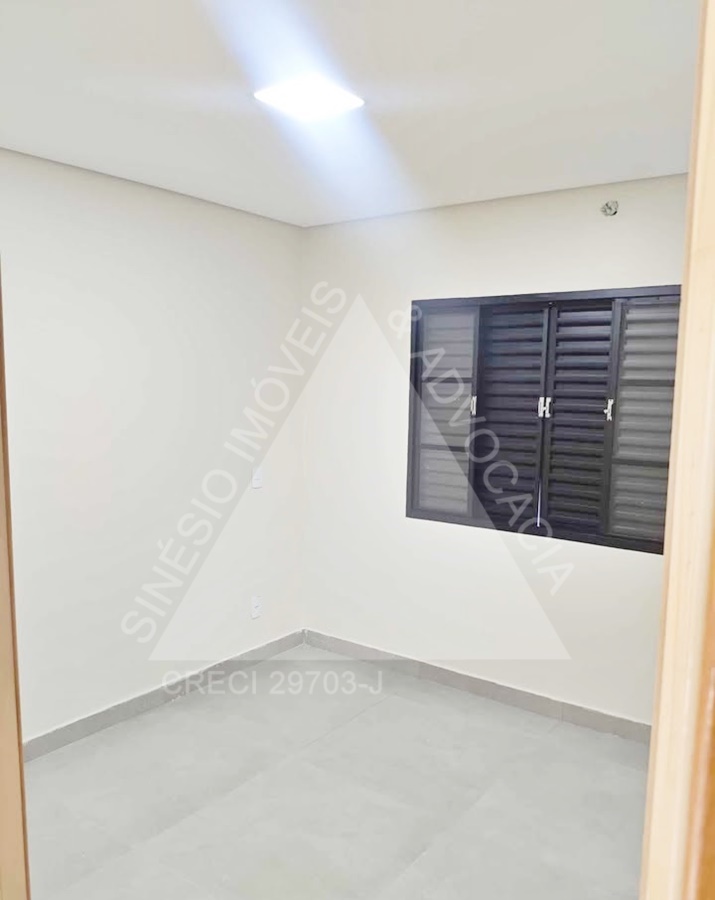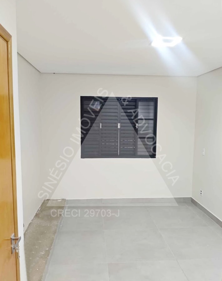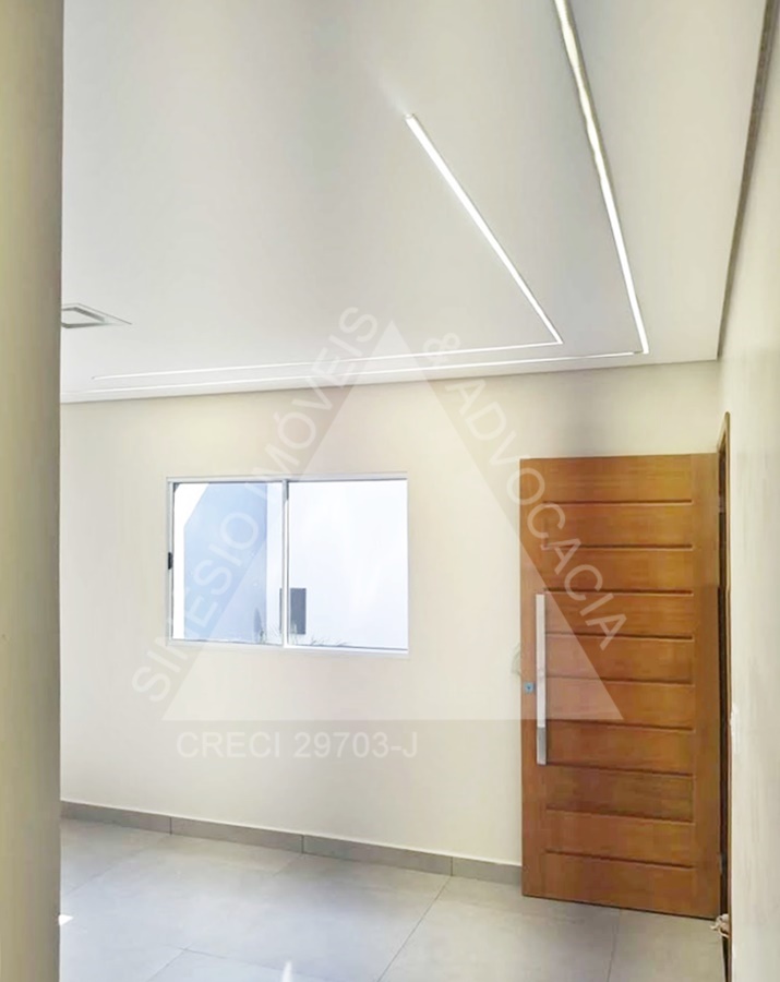02 dormitórios, sendo 01 suíte; sala ampla com LED; WC social; cozinha; área de serviço; quintal; jardim; quarto reversível nos fundos; piso porcelanato; garagem 03 vagas. IPTU mensal: R$49,90.