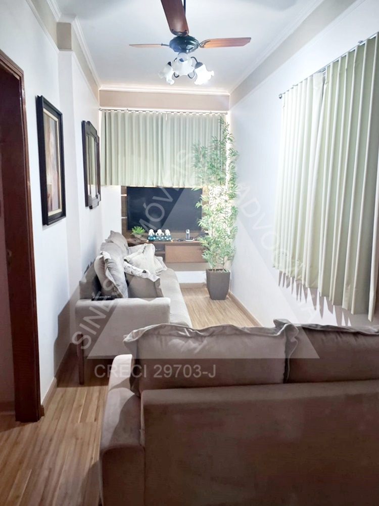 02 dormitórios com armários, sendo 01 com ar condicionado; ventiladores; sala 02 ambientes; WC social com gabinete; copa; cozinha planejada com cooktop e sugador; área de serviço; garagem 01 vaga. IPTU mensal: R$42,78.