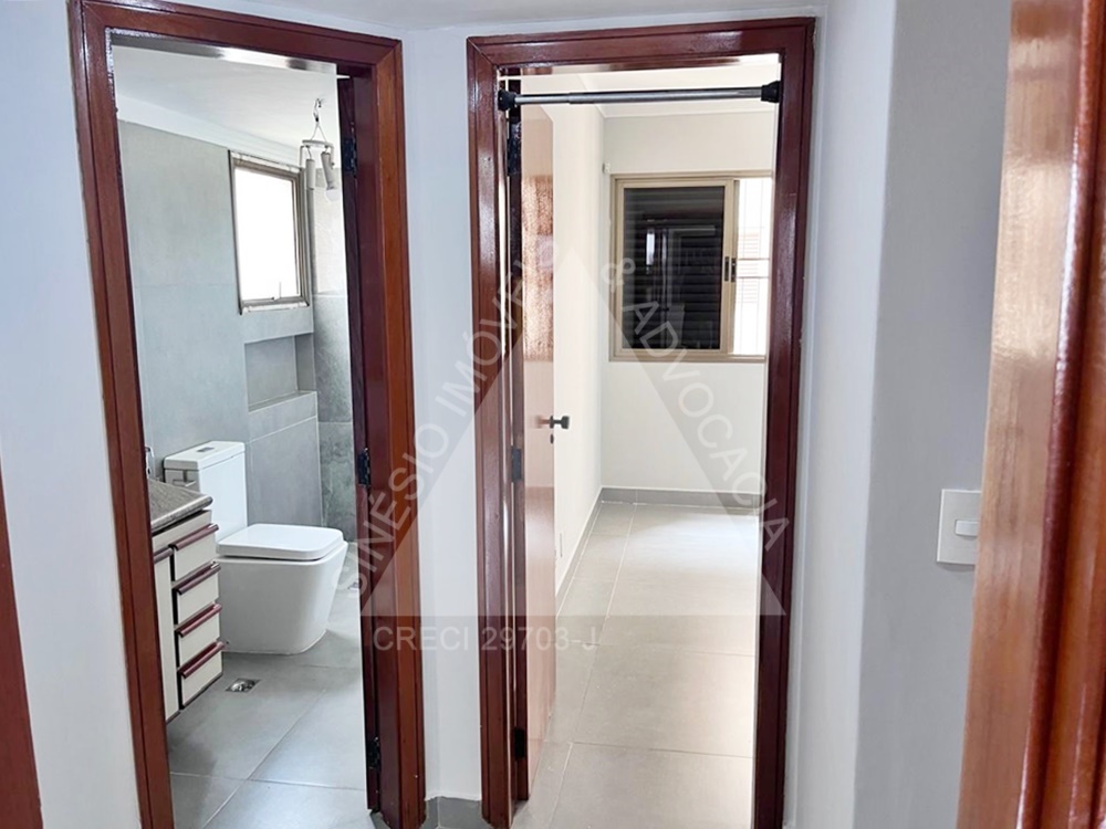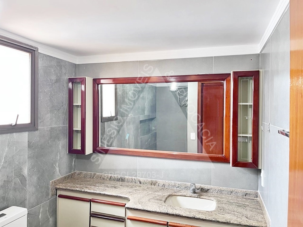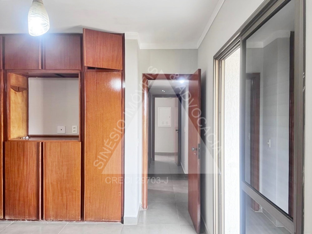 03 dormitórios com armários e ar condicionados, sendo 01 suíte; sala 02 ambientes com painel; sacada; WC social com gabinete; cozinha;; WC de serviço; área de serviço com armário; garagem 02 vagas; todo em porcelanato. Condomínio no valor de R$1.060,00 com elevador, portaria 24 horas, piscina, academia, salão de festas. IPTU mensal: R$117,98.