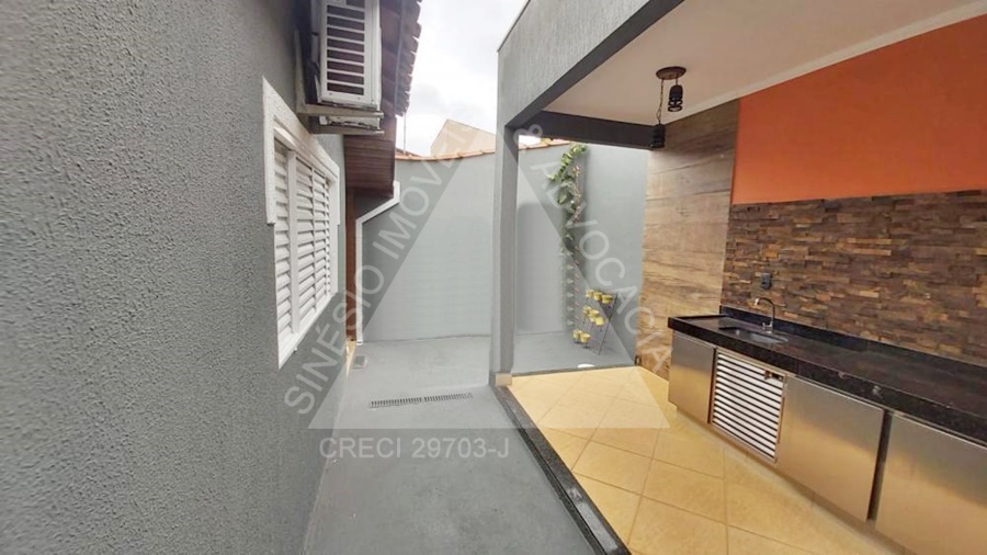 03 dormitórios com armários e ar condicionados, sendo 01 suíte; WC social com box e gabinete; cozinha planejada; área de serviço externa coberta; quintal com churrasqueira e forno a lenha; WC externo; garagem 02 vagas. IPTU mensal: R$96,71.