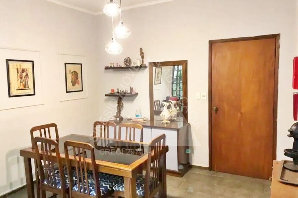03 dormitórios com armários, sendo 01 suíte; sala ampla com jardim de inverno; WC social com box e gabinete; roupeiro; 02 salas íntimas; cozinha planejada; área de serviço com armário; quintal com pia; edícula com 01 dormitório; banheiro externo; garagem 04 vagas. IPTU mensal: R$157,20.