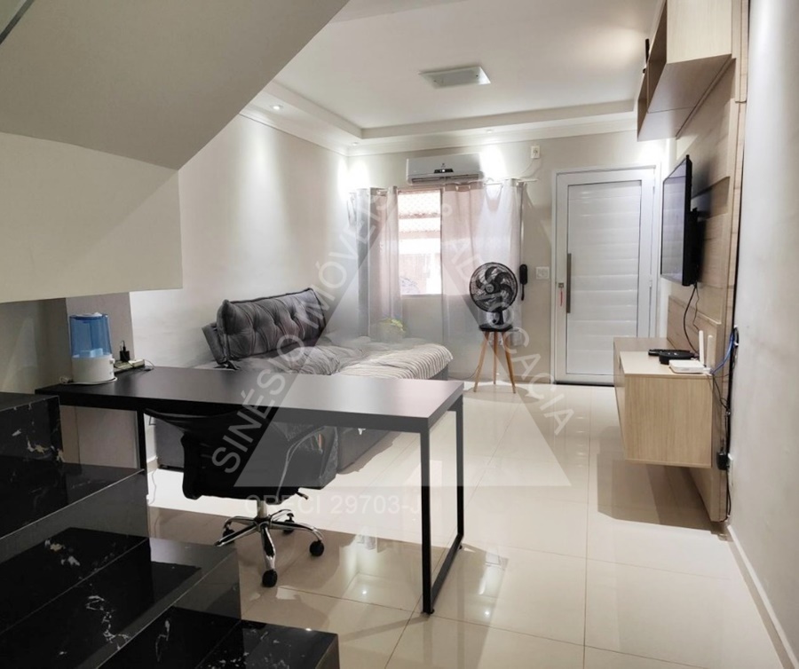 02 dormitórios com armários e ventiladores; sala 02 ambientes com ar condicionado; WC social com box e gabinete; cozinha planejada; área de serviço; varanda gourmet com churrasqueira; WC externo; garagem 02 vagas. IPTU mensal: R$53,40 e condomínio: R$250,00.