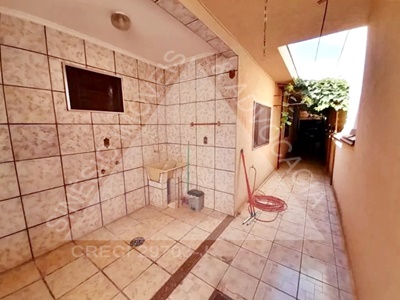 03 dormitórios com ventiladores e armários embutidos, sendo 01 suíte com box e gabinete; sala 02 ambientes; cozinha ampla com gabinete; WC social com box e gabinete; área de serviço externa coberta; varanda com churrasqueira e pia; WC externo; corredor lateral; garagem 02 vagas cobertas; lajeada; piso frio. IPTU mensal: R$125,03.