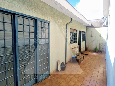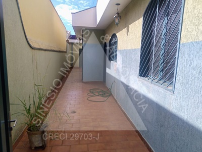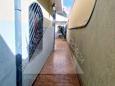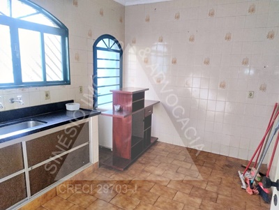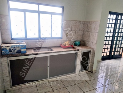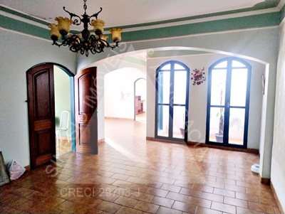 03 Dormitórios com ventiladores (sendo 01 suíte com armário embutido e ar condicionado); sala ampla; Cozinha com gabinete; WC Suíte com gabinete e box; WC Social com gabinete; lavanderia; Edícula: sala; cozinha; garagem 02 vagas; piso frio; lajeada; pintura usada.