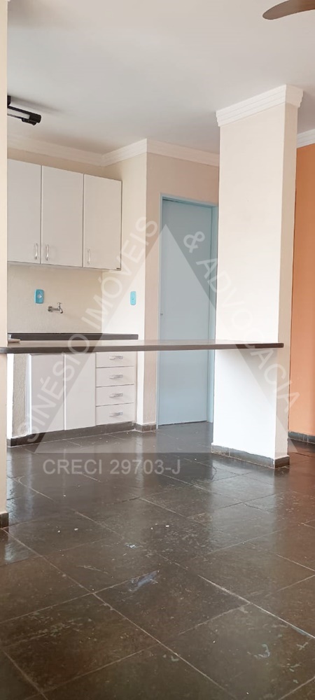 02 dormitórios, sendo 01 com armário e ar condicionado; WC social com box; sala; cozinha com gabinete; área de serviço; garagem 01 vaga. Condomínio mensal de R$250,00 incluso água e gás. IPTU mensal: R$19,96.