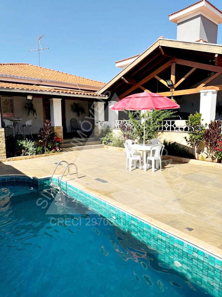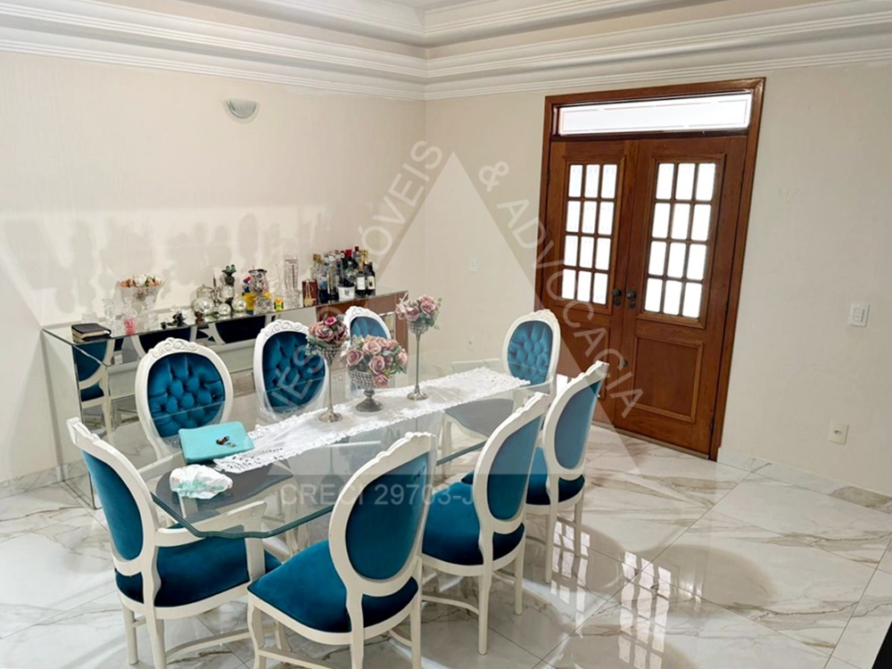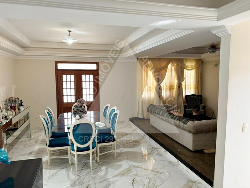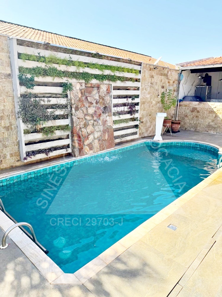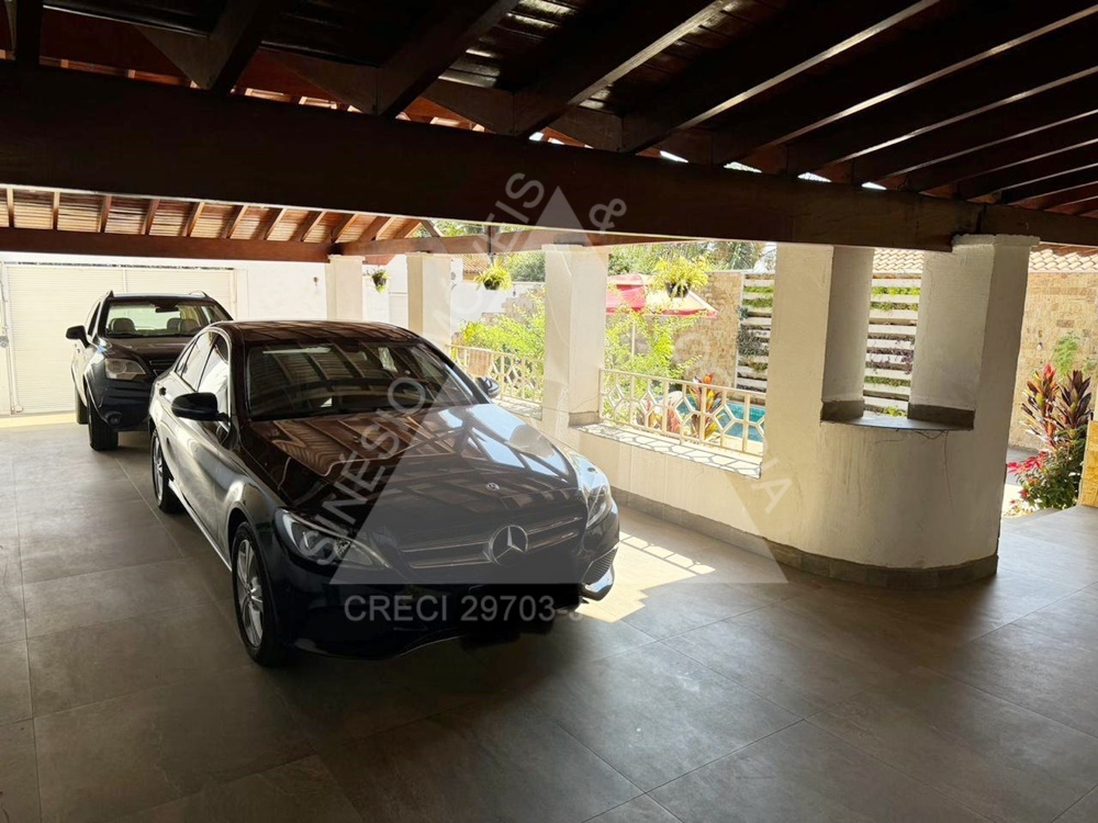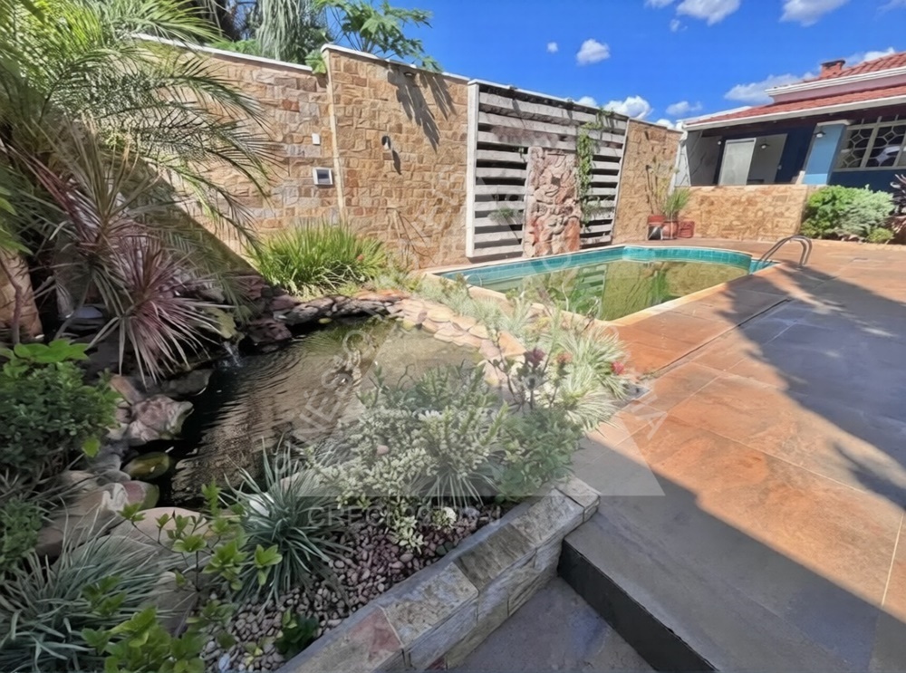 04 dormitórios com armários e ar condicionados, sendo 02 suítes e 01 delas master com hidro; living amplo 03 ambientes com ar condicionado; lavabo; copa; cozinha planejada com cooktop; área de serviço; quintal; edícula contendo sala com painel, 01 dormitório com armário, WC social com box e gabinete e despensa; jardim; varanda com piscina; lago de peixes; garagem 06 vagas. IPTU mensal: R$243,69.