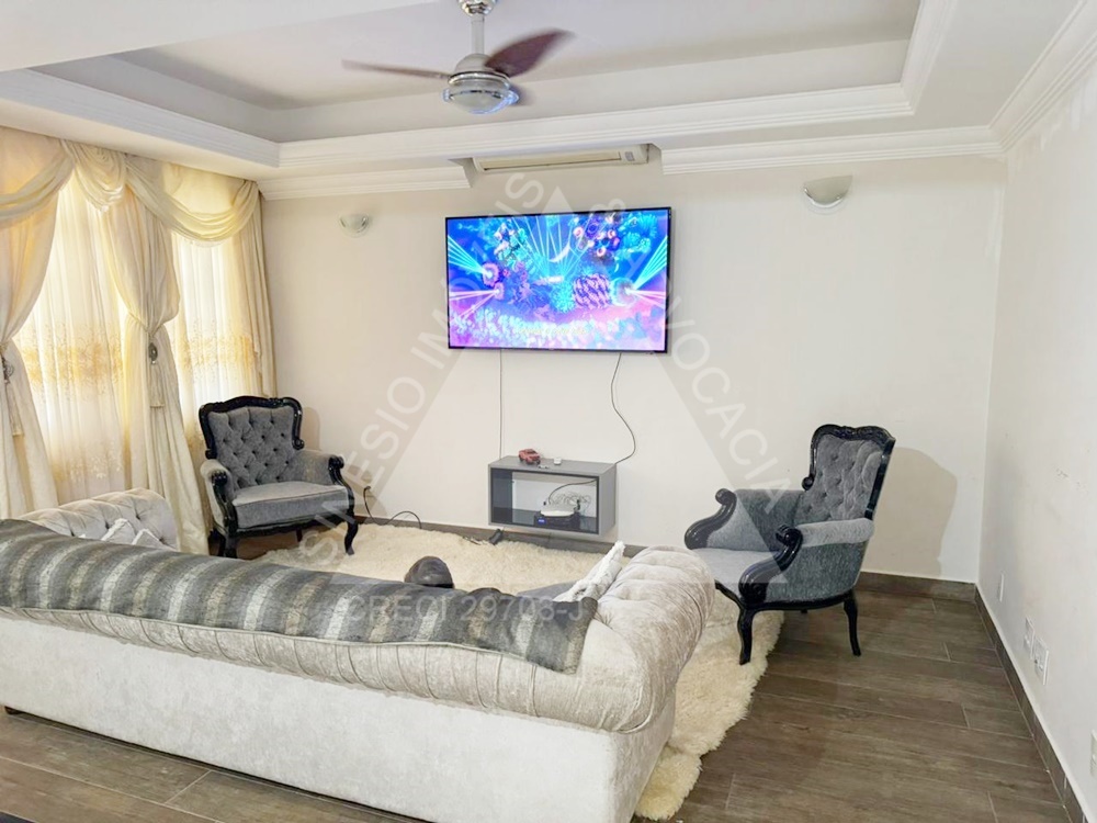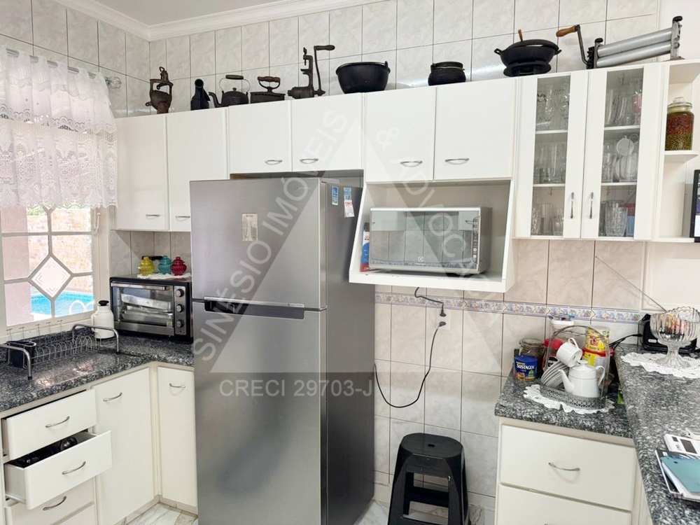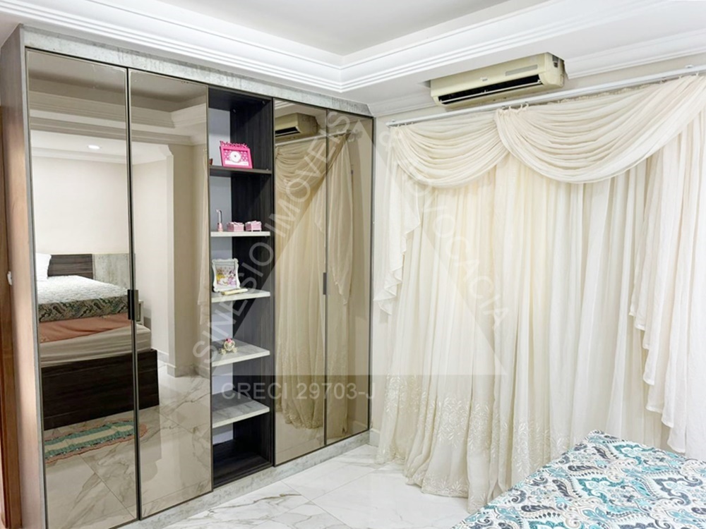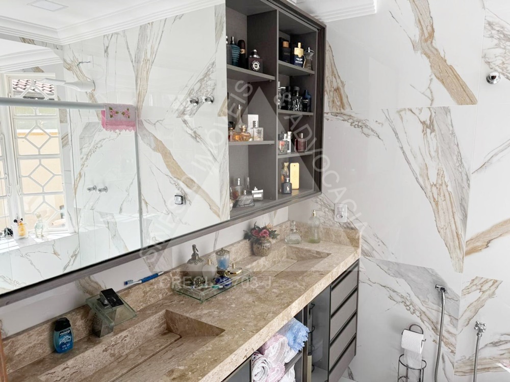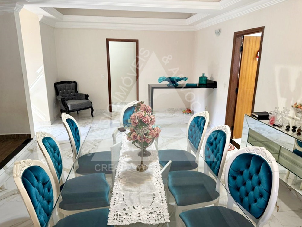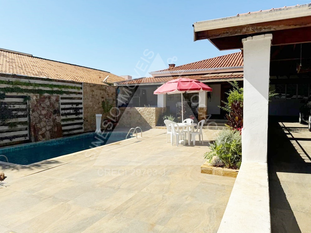 04 dormitórios com armários e ar condicionados, sendo 02 suítes e 01 delas master com hidro; living amplo 03 ambientes com ar condicionado; lavabo; copa; cozinha planejada com cooktop; área de serviço; quintal; edícula contendo sala com painel, 01 dormitório com armário, WC social com box e gabinete e despensa; jardim; varanda com piscina; lago de peixes; garagem 06 vagas. IPTU mensal: R$243,69.