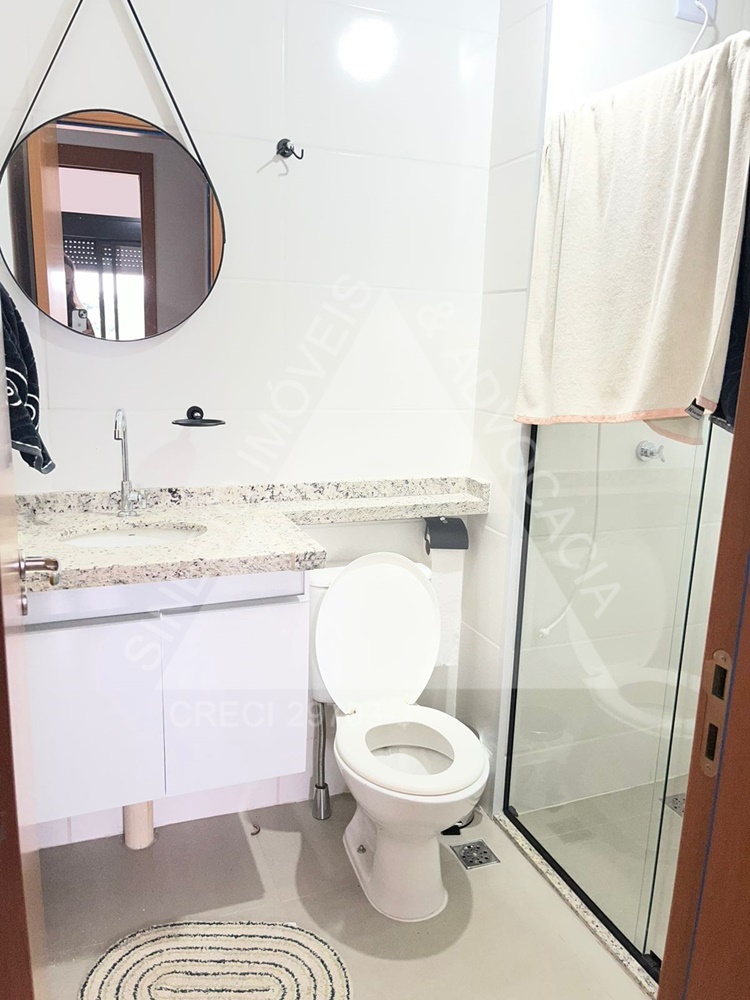 02 dormitórios com armários, sendo 01 suíte; sala 02 ambientes; WC social com box e gabinete; cozinha planejada; área de serviço; garagem 01 vaga. Condomínio mensal de R$630,00 com elevador, portaria 24 horas, piscina, playground, salão de festas, área de churrasco, academia, câmeras de segurança e medidor individual. IPTU mensal: R$44,01.